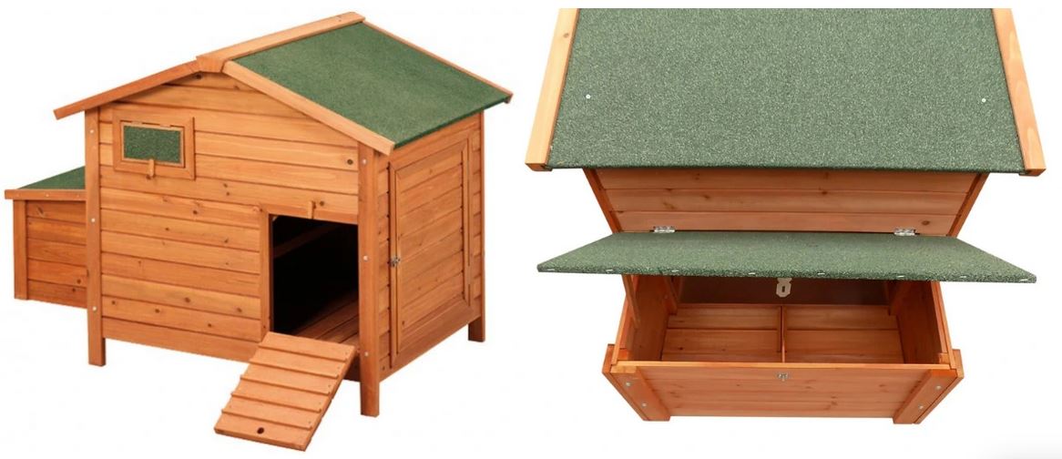 Čištění kurníku zvládnete hravě během chvilky skrz otevřené boční dvířka. Také čištění snáškového hnízda nebude problém, díky výklopné stříšce.