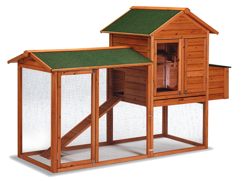 Kurník pro slepice, pro 6-8 nosnic, 2 vnější snášková hnízda, výsuvný trusník pro snadné čištění, rozměry: 2270x940x1510 mm.