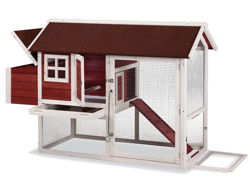 Vnější rozměry celého kurníku jsou 1710 x 810 x 1100 mm, a tak poskytuje pohodlí pro 6 -8 klasických nosnic. Navíc je kurník v a traktivní bílo-červené barvě.J eho skvělé rozvržení prostoru poskytuje dostatek místa, jak uvnitř kurníku, tak také v maximálně využitém výběhu pro nosnice.