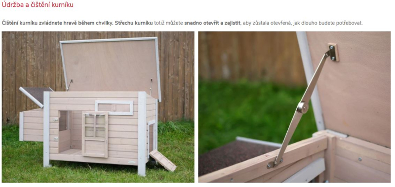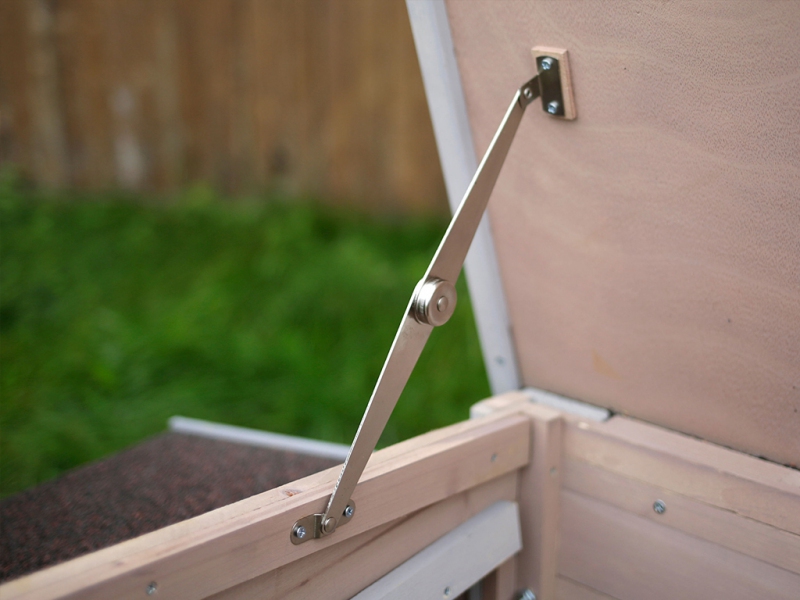 Čištění kurníku zvládnete hravě během chvilky. Střechu kurníku totiž můžete snadno otevřít a zajistit, aby zůstala otevřená, jak dlouho budete potřebovat.