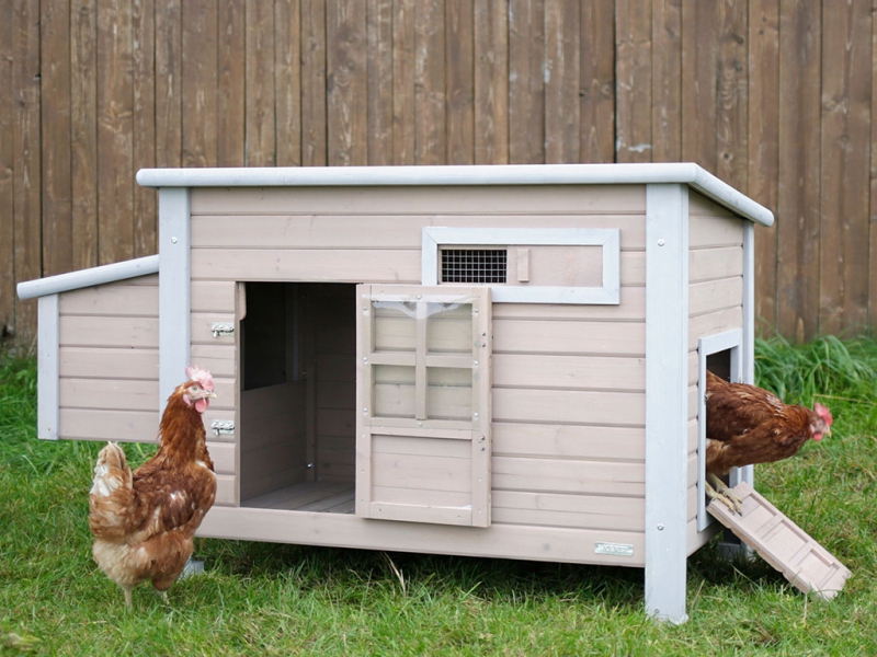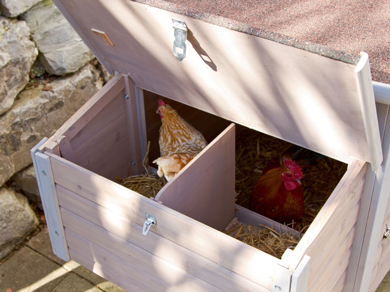 Kurník pro slepice, pro 4-6 slepic, 2 vnější snášková hnízda, 2 hřady, otevíratelná střecha pro snadné čištění.