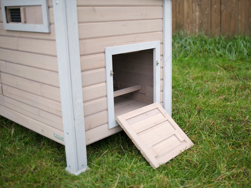 Pro snadný přístup je kurník vybaven hned dvěma dvířky. Jedna posuvná dvířka opatřená zámečky jsou umístěna zpřední strany kurníku a slouží pro jednoduchou výměnu vody, krmení a dobrou dostupnost do kurníku. Z boční strany má kurník pro slepice ještě výklopná dvířka, která slepicím umožní snadný výstup na zahradu nebo do výběhu. Tato dvířka se zavírají také na zámečky, aby je nemohl žádný predátor otevřít.
