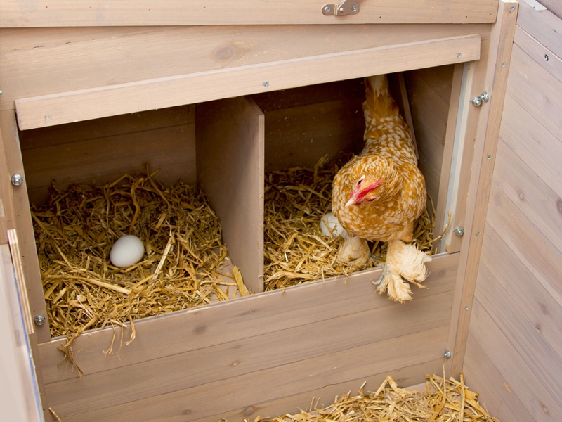 Kurník pro slepice je vybaven dvěma hřady pro noční odpočinek slepic. Součástí kurníku jsou také dvě vnější kukaně, v kterých budou mít slepice dostatek prostoru a klidu pro snášení vajec. Získávání vajíček přitom bude velice jednoduché, jelikož k jejich vyzvednutí stačí pouze zvednout střechu snáškových hnízd.