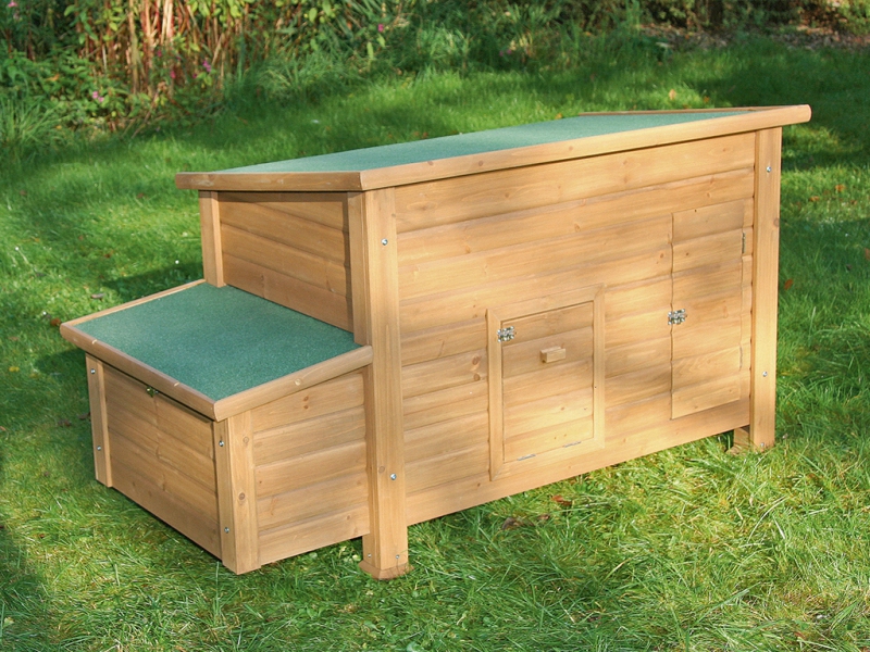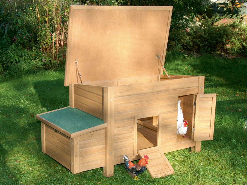 Kurník pro slepice, pro 3-5 slepic, 2 vnější snášková hnízda, 2 hřady, odklápěcí střecha pro snadné čištění.