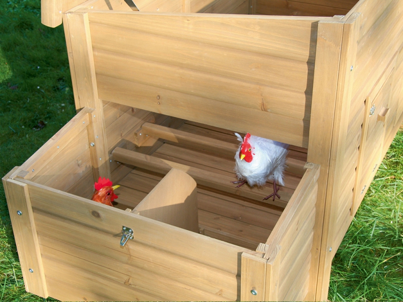 Kurník pro slepice je vybaven dvěma hřady pro noční odpočinek slepic. Součástí kurníku jsou také dvě vnější kukaně, v kterých budou mít slepice dostatek prostoru a klidu pro snášení vajec. Získávání vajíček přitom bude velice jednoduché, jelikož k jejich vyzvednutí stačí pouze zvednout střechu snáškových hnízd.