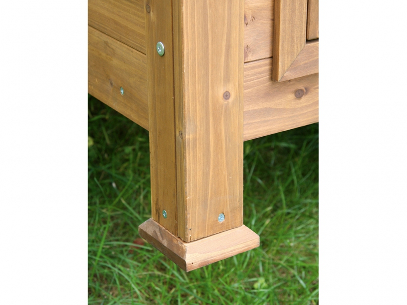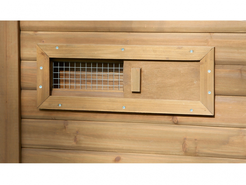Kurník vyrobený z borovicového dřeva má hmotnost cca 33 kg, a tak zajišťuje velkou stabilitu. Pro zajištění odvětrávání podlahy, je kurník umístěn na čtyřech vyvýšených nožičkách. Kurník není zateplený. Pro ochranu proti slunečnímu záření je střecha kurníku i snáškových hnízd pokryta asfaltovou krytinou. Přesto doporučujeme kurník umístit pod přístřešek, aby byl chráněn před deštěm, sněhem a extrémním slunečním záření. Dřevěný kurník je povrchově ošetřen základním ochranným nátěrem. Pro delší životnost je třeba, jako u každého dřeva, ochranný nátěr obnovovat. Cirkulaci vzduchu v kurníku zajišťuje přední posuvné okénko.