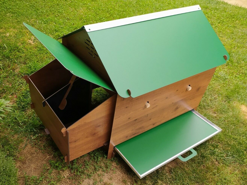 Kurník pro 9-12 slepic, 2 vnější kukaně, 3hřady, vyjímatelný trusník pro snadné čištění, HPL laminát.