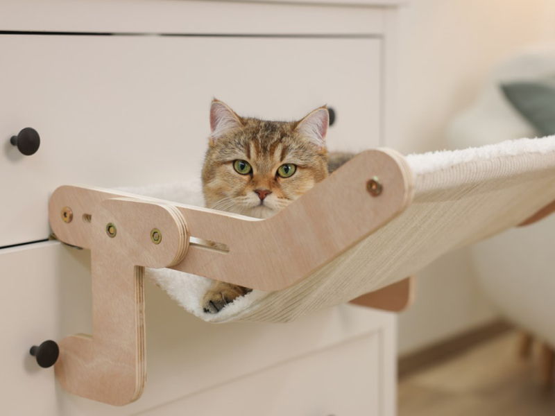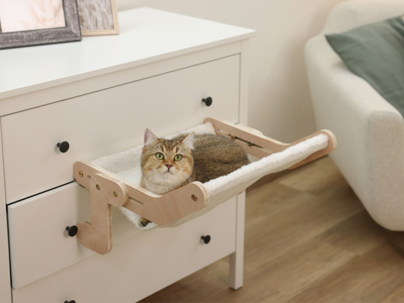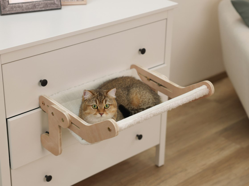 Tento vkusný a elegantní kousek si získá srdce všech hravých koček. Lehátko není jen zábavním místem, ale také útulným pelíškem, ze kterého si Vaše kočka může užívat pozorování okolí nebo si spokojeně zdřímnout. Lehátko je velmi snadné připevnit či naopak odstranit, navíc bez nutnosti vrtání. Potah je snímatelný a lze ho prát v pračce na 30°C.Lehátko je možné připevnit k posteli, komodě, skříni, zásuvek apod. za pomocí uzamykatelné podpěrné nohy pro přizpůsobení.