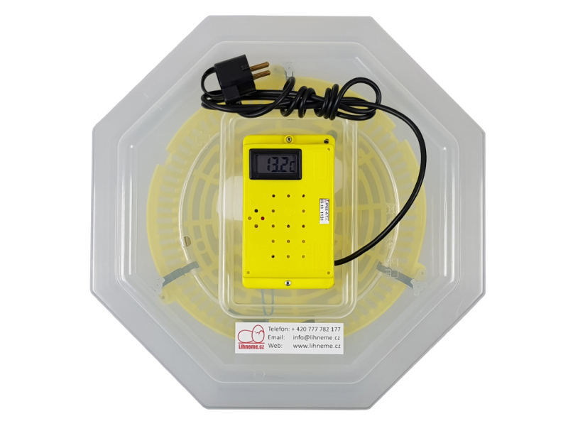 Teplotu je možné nastavit a případně i dále regulovat v rozsahu od 35 do 40 °Cza pomoci manuálního regulátoru uelektronické řídící jednotky. Panel je vybaven digitálním displejem s ukazatelem teploty a na levém boku otočným regulátorem pro potřebné nastavení teploty v líhni.