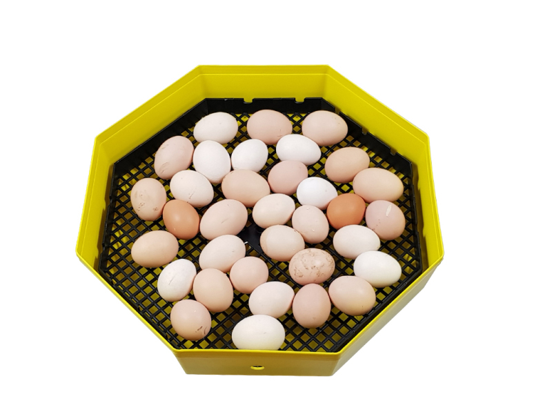 Kapacita bez otočného roštu: 60 slepičích, 120 křepelčích, 30 husích,50 kachních nebo 70 bažantích vajec.