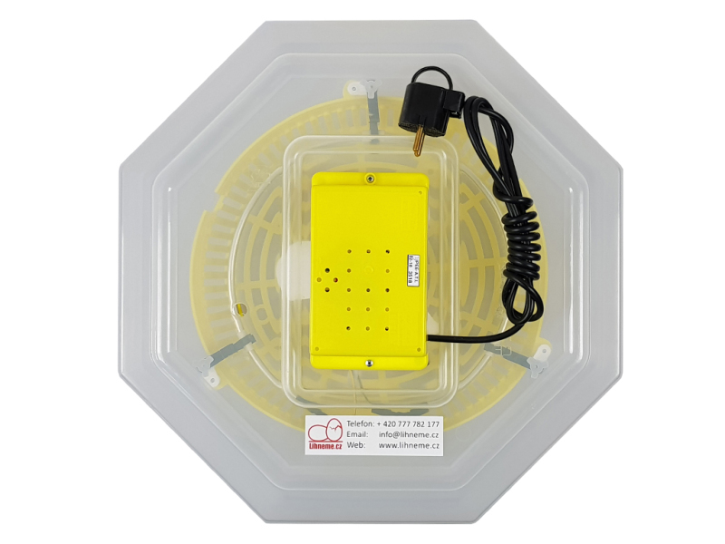 Líheňna vejce vhodná klíhnutí vodní a hrabavé drůbeže, s manuálním (ručním) otáčením, kapacita 60 slepičích vajec, možnost přikoupit otočný rošt, s manuální regulací teploty od 35 do 40 °C, s manuální regulací vlhkosti, bez teploměru, bez vlhkoměru.