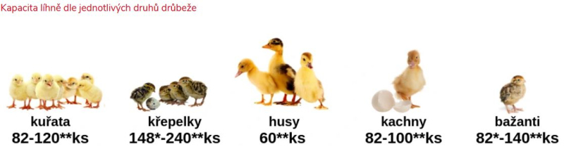 Kapacita líhně dle jednotlivých druhů drůbeže