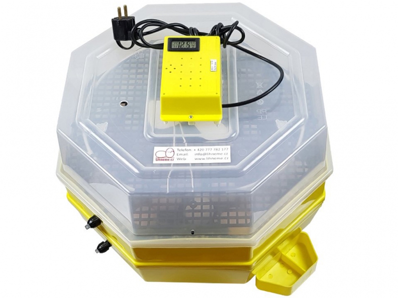 Líheň na drůbež, poloautomatické otáčení, na 82slepičích vajec, ukazatel teploty a vlhkosti, regulace teploty 35-40°C, nádržka na vodu.