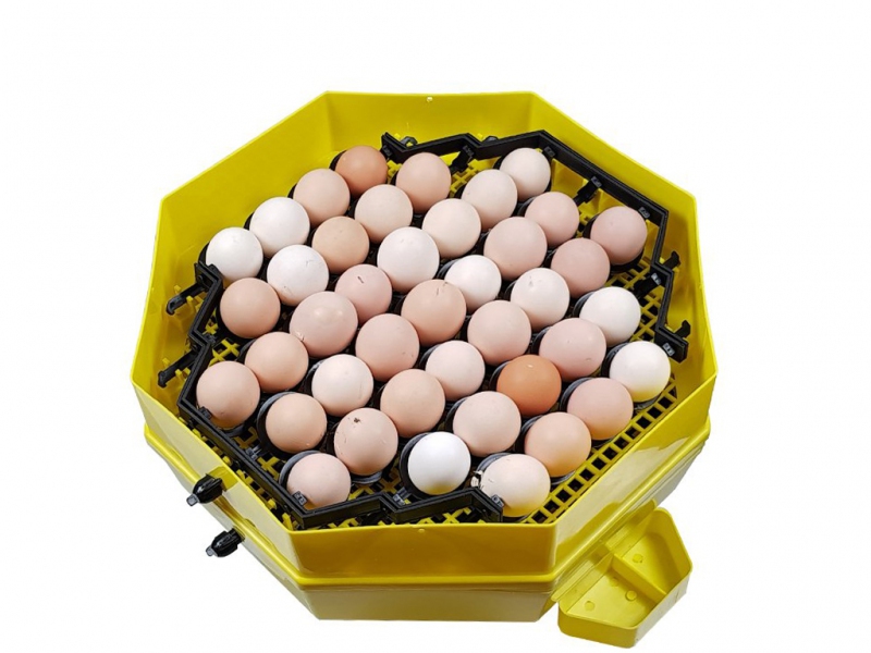 *Kapacita bez otočných roštů: 120 slepičích, 240 křepelčích, 60 husích, 100 kachních nebo 140 bažantích vajec.