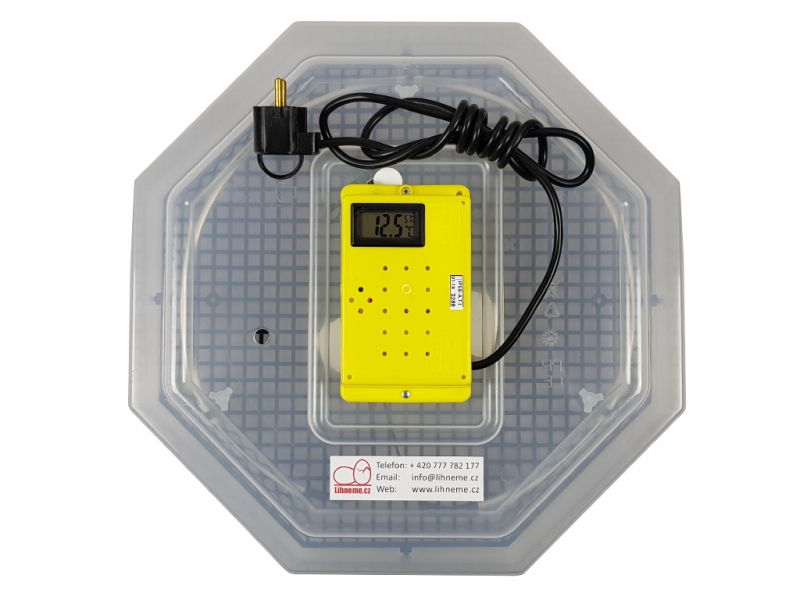 Teplotu je možné nastavit a případně i dále regulovat v rozsahu od 35 do 40 °C za pomoci manuálního regulátoru u elektronické řídící jednotky. Panel je vybaven digitálním displejem s ukazatelem teploty a vlhkosti, a na levém boku otočným regulátorem pro potřebné nastavení teploty v líhni.