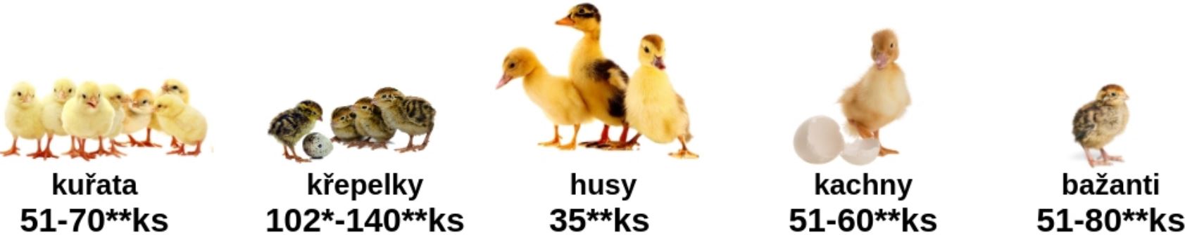Kapacita líhně dle jednotlivých druhů drůbeže