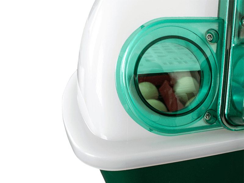Líheň nabízí možnost poloautomatického otáčení vajecza pomocí páčky, která pohybem ruky otáčí vejci umístěnými v otočném roštu dle Vašich možností, ideálně v pravidelném intervalu - minimálně ráno a večer. Otočný rošt je vybaven unikátními liskami vhodnými pro všechny velikosti vajec vodní a hrabavé drůbeže. V případě potřeby je také u líhně možné otáčet vejce manuálně (ručně) a to při vytáhnutí páčkya vyjmutí otočného roštu z líhně a umístěním vajec přímo na mřížku - základnu na líhnutí. Standartně je tato mřížka užívána pouze na poslední 2-3 dny inkubace, kdy se vejce vyjmou z otočného roštu a vloží se na tuto mřížku, kde se s nimi již neotáčí, aby si plod mohl najít nejvhodnější cestu ze skořápky a úspěšně se tak vylíhnul v drůbež.