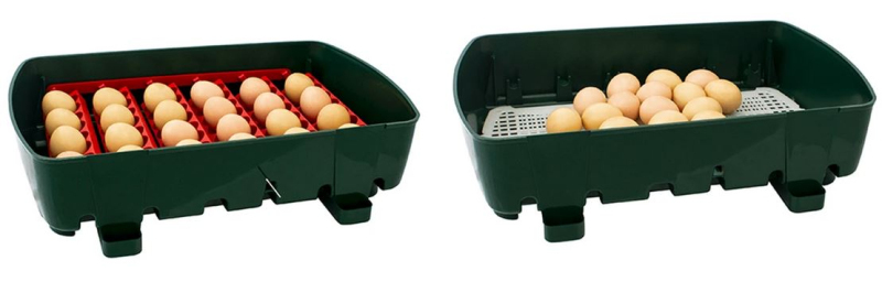 Kapacita s otočným roštem: 24 slepičích, 96 křepelčích, 24 husích, 24 kachních nebo 24 bažantích vajec.