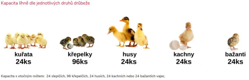 Kapacita líhně dle jednotlivých druhů drůbeže