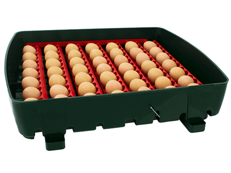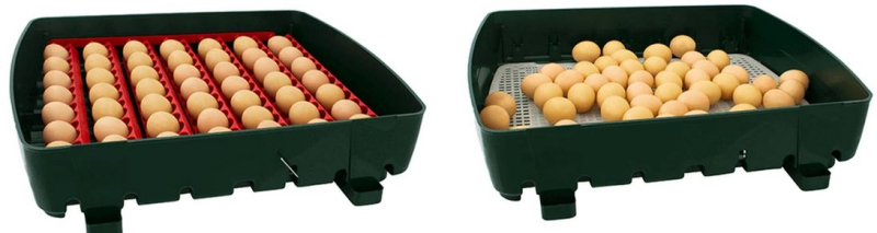 Kapacita s otočným roštem: 49 slepičích, 196 křepelčích, 49 husích, 49 kachních nebo 49 bažantích vajec.