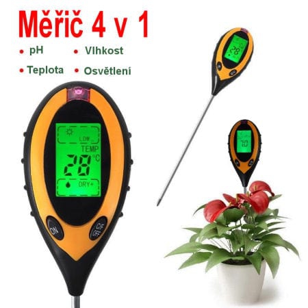 Kombinovaný měřič 4 v 1 - měří vlhkost a pH půdy, teplotu a osvětlení