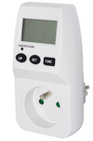 - Měřené veličiny: AC napětí, AC proud, aktuální spotřeba, celková spotřeba, celkové náklady, frekvence, učiník