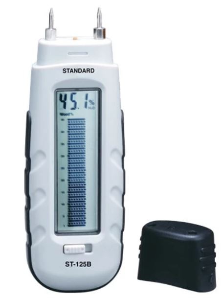 Odolný a přesný měřicí přístroj ST-125B (FM-200 , DT-125B ) k určení vlhkosti dřeva a stavebních materiálů (omítka, beton, také v lepence a papíru) a ve tvrdnoucích materiálech (sádra, beton a malta).