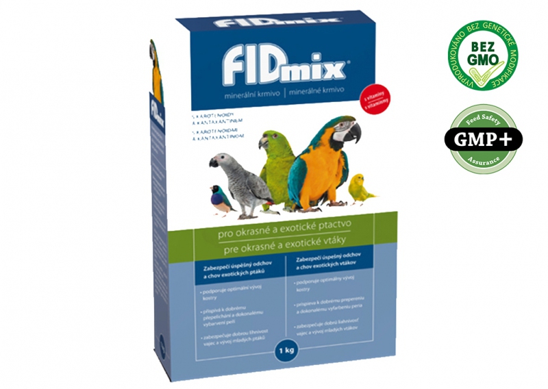 Minerálně vitaminové krmivo FIDMIX PRO OKRASNÉ A EXOTICKÉ PTACTVO 1 kg krabička