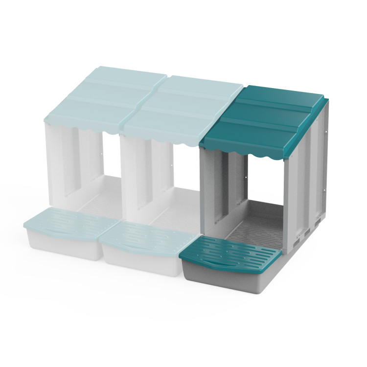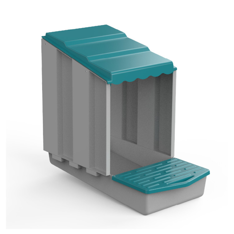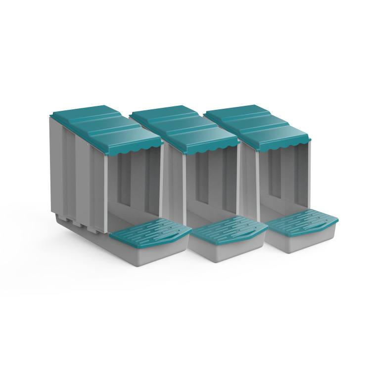 Modulární snáškové hnízdo je chytré a flexibilní řešení pro každého chovatele slepic. Každý modul tvoří samostatné hnízdo pro jednu slepici, přičemž jednotlivé díly lze jednoduše spojovat do sebe a vytvářet tak řetězec hnízd o libovolném počtu. Díky tomu si sami zvolíte, zda vytvoříte malé hnízdo pro jednu slepici, nebo rozšířený snáškový systém pro 3, 6, 10 i více slepic – bez nutnosti kupovat nové kompletní hnízdo.