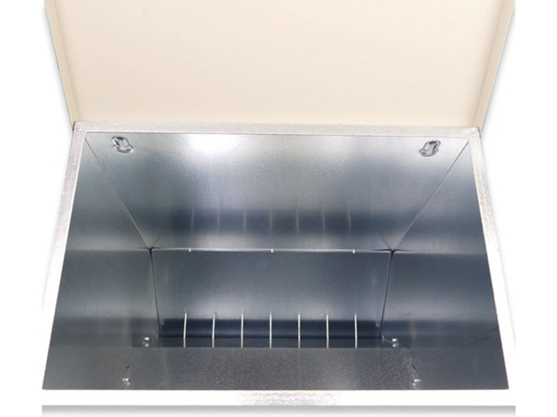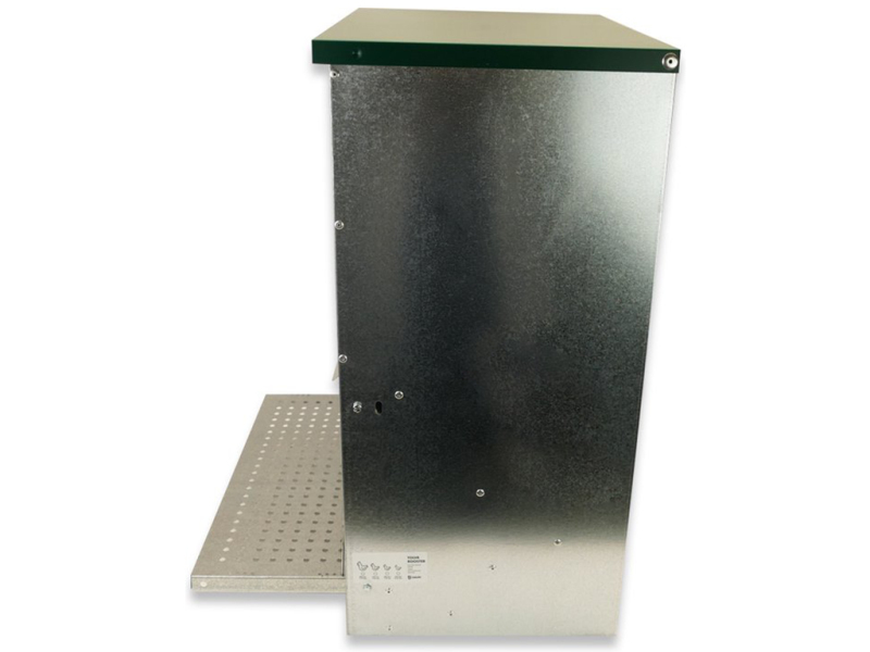 S víkem a nášlapnou plošinou, 40 KG zásobníkem, s okénkem, do 100 slepic, rozměry: 450 x 470 x 635 mm.