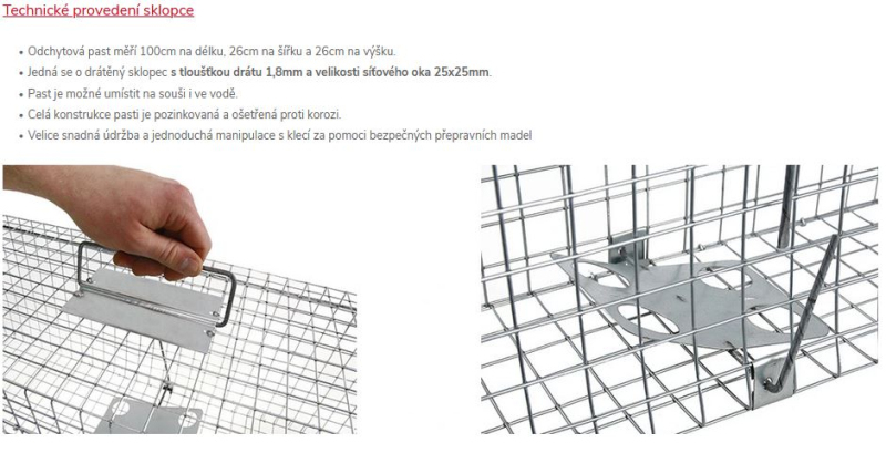 - Celá konstrukce pasti je pozinkovaná a ošetřená proti korozi.