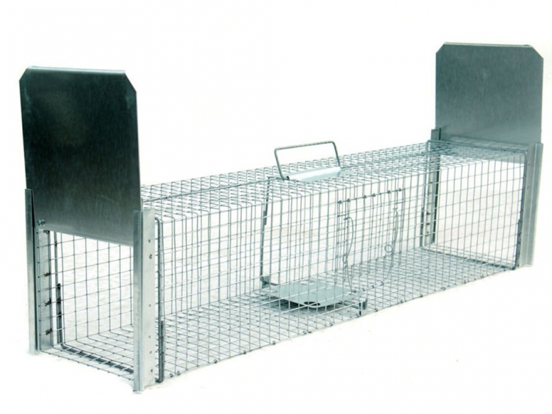 Pozinkovaná odchytová past na kuny a kočky, rozměry 100 x 26 x 26 cm, tloušťka drátu 1,8 mm, 2vstupy do pasti, zavírací systém brána.