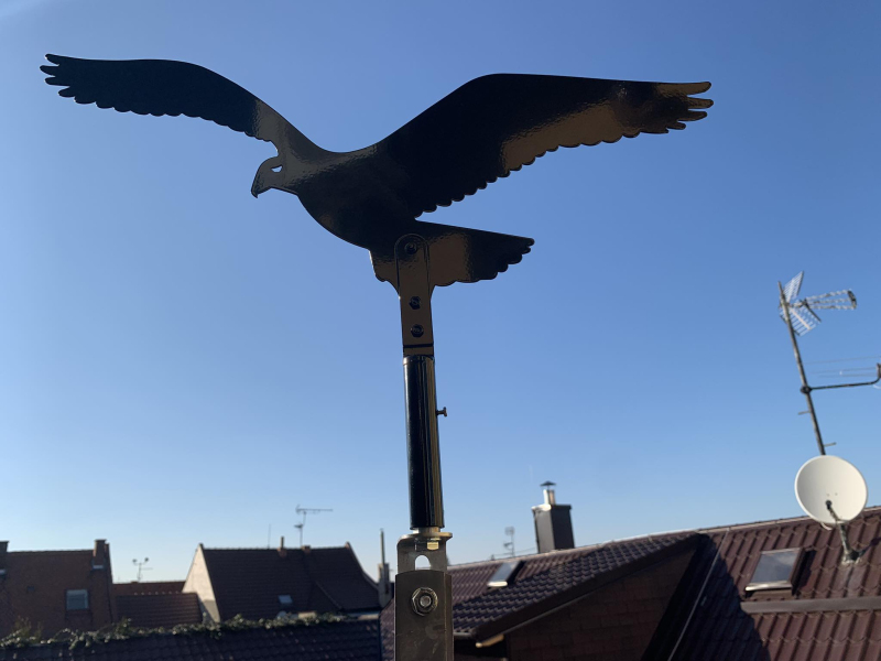 Plašič ptáků Sokol 2D – otočná silueta dravce pro montáž na hřebenáč střechy