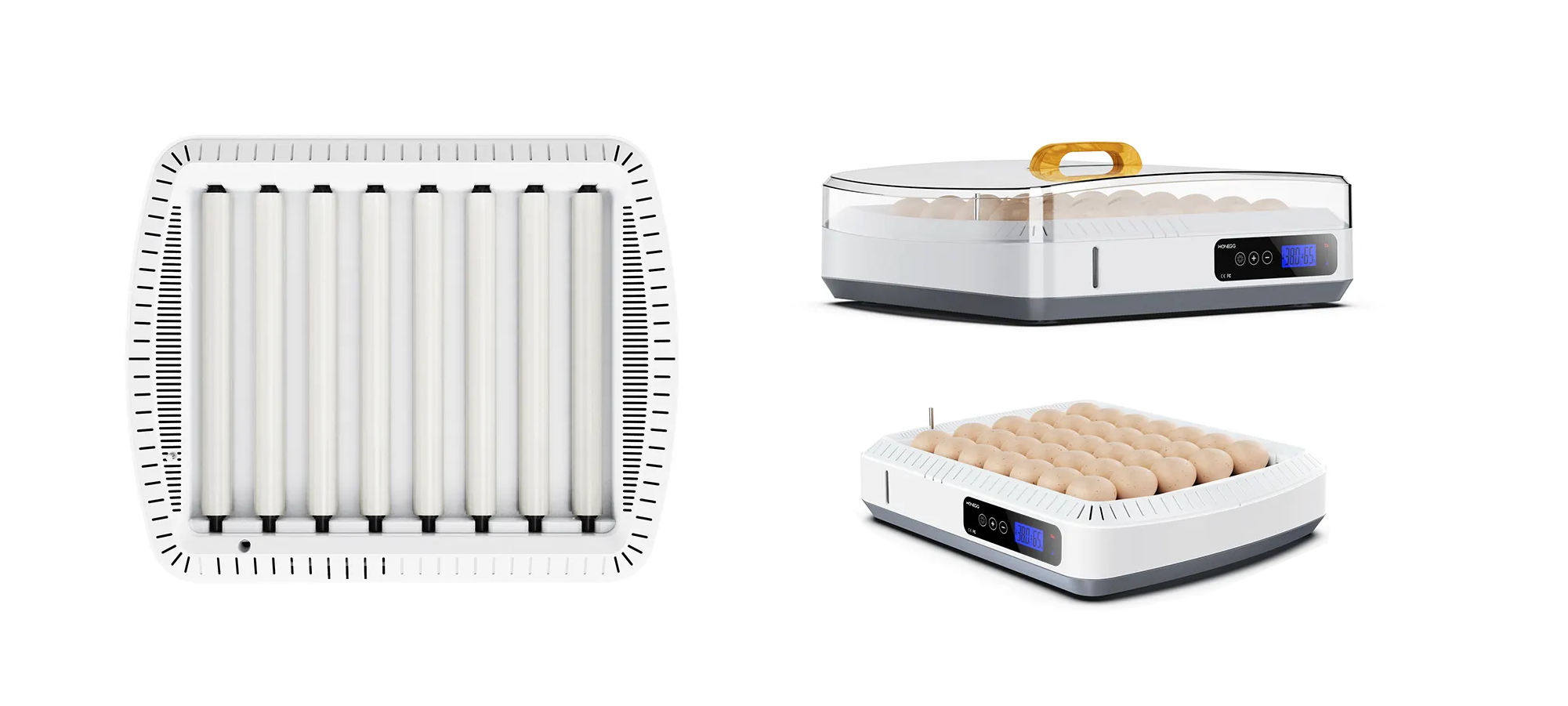 - Plně automatický provoz: Líheň automaticky otáčí vajíčka každé dvě hodiny, což simuluje přirozené chování kvočny.