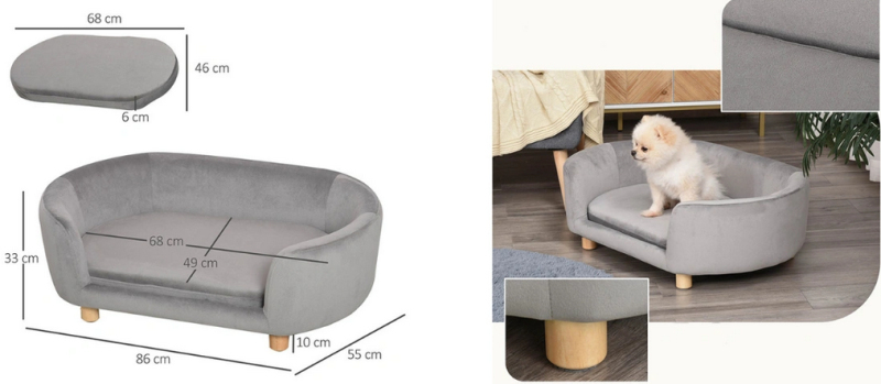 Pohovka pro psy PAWHUT D04-167GY, světle šedá, 86 x 55 x 33 cm