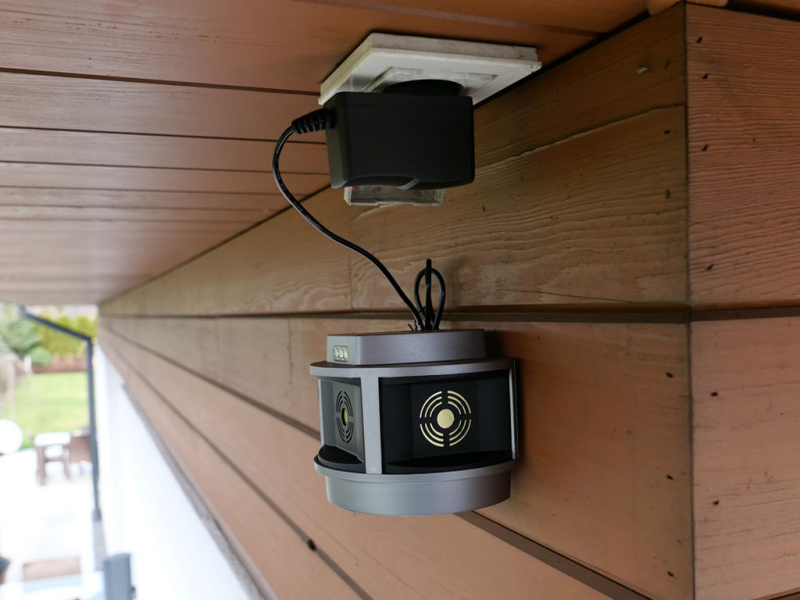 Zařízení je napájeno přes 12V adaptér, který je součástí balení. Odpuzovač disponuje praktickými vypínači v ochranném pouzdru, díky kterým můžete plašení jednoduše vypnout a zapnout, jak ultrazvuk tak i záblesky,bez nutnosti vypojit adaptér ze sítě.