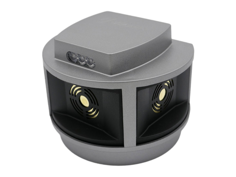 Prostorový ultrazvukový odpuzovač kun a hlodavců, 3000m2, rozsah 270°, 3x LED, 3 piezoelektrické reproduktory, 12V adaptér.