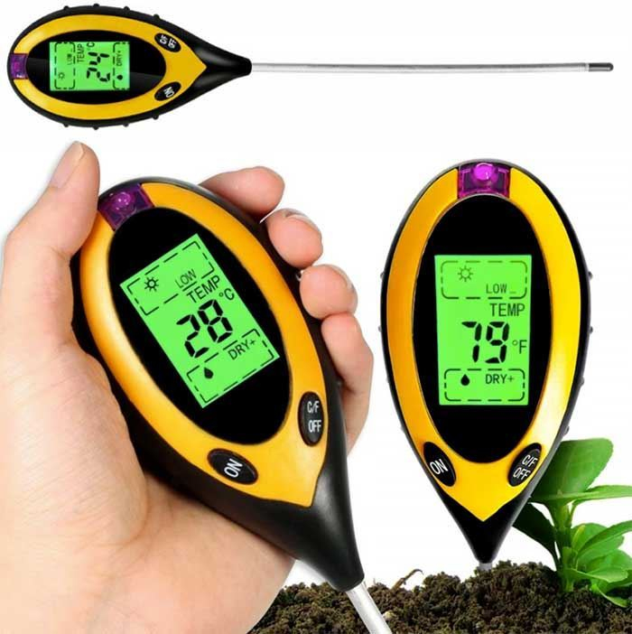 S digitálním přístrojem pro půdní měření lze zjistit pH, vlhkost a teplotu půdy a intenzitu slunečního záření.
