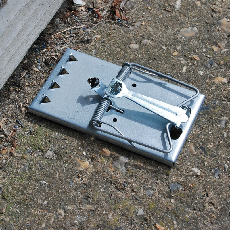 Celokovová jednoduchá mechanická past na potkany a krysy pro vnitřní i venkovní použití.