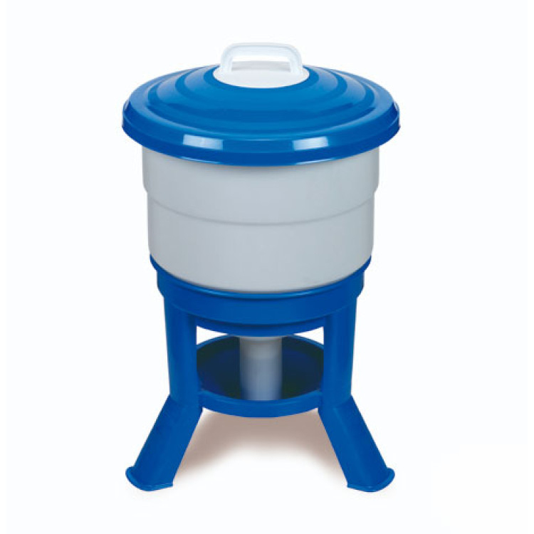 Plastová napáječka od výrobce GAUN. S objemem 50 litrů a rozměry zásobníku 515 mm v průměrua825 mm na výšku je tato napáječkavhodná až pro 100 slepic. Je navržena tak, aby vyhovovala potřebám všech druhů dospělé drůbeže.