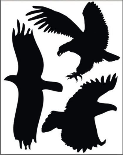 Realistické samolepky našich dravců - použití jako samolepka okna (lepící strana je bílá) a jiné hladké povrchy k plašení a ochraně ptáků.