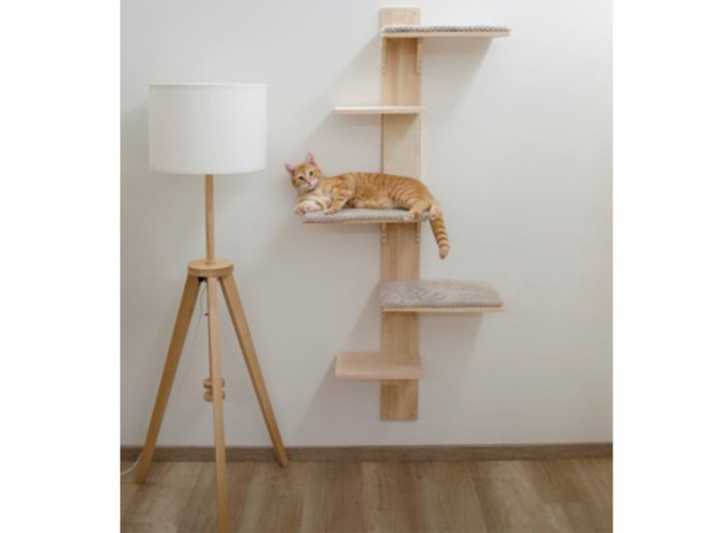 Jedná se operfektní škrabadlo pro kočky, které nezabere téměř žádné místo a můžete ho využít i v menší prostorech. Kočičí strom snadno namontujete na zeď. Kočičí strom je odpočívadlo a škrabadlo zároveň a Vaše kočka bude mít ideální místo na lezení, odpočívání i hraní. Škrabadlo se skládá ze dvou stupaček a tří ploch k ležení s odnímatelnými polštáři, které se snadno udržují v čistotě. Funkci škrabadla plní deska, která je obalena sisalovým vláknem. Kočky budou mít z kočičího stromu krásný výhled pro pozorování okolí.