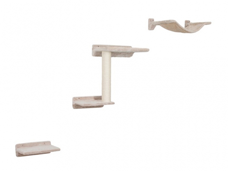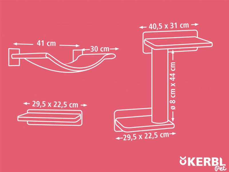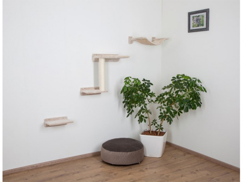 Pokud hledáte elegantní škrabadlo pro kočky, které zapadne do každého interiéru, pak pro Vás máme skvělý tip. Škrabadlo pro kočky snadno namontujete na zeď, a tak Vám v bytě nezabere téměř žádný prostor. Škrabadlo se skládá ze dvou stupaček, jednoho sisalového sloupku, polstrované desky na ležení a houpací sítě. Vaše kočička zde bude mít pohodlné a klidné místo pro odpočinek, hraní a broušení drápků. Zároveň zde bude mít Váš mazlíček krásný výhled pro pozorování okolí.