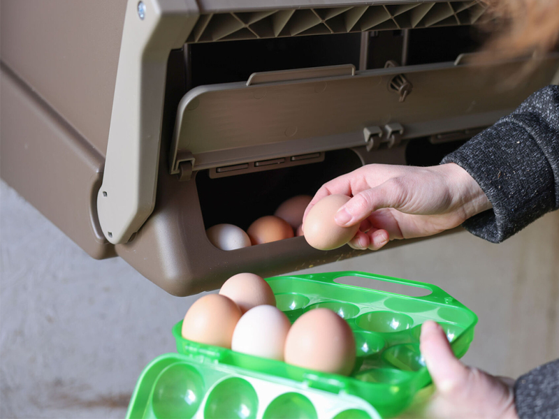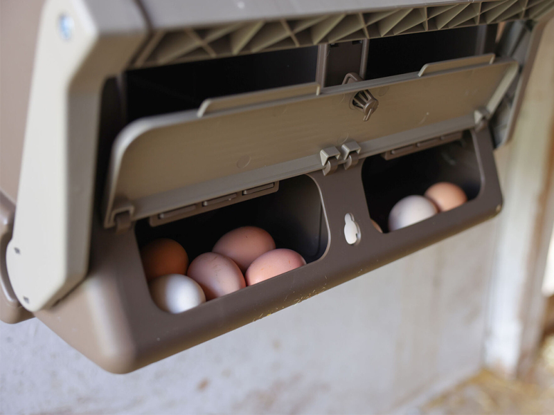 Pokud hledáte praktické snáškové hnízdo pro Vaše slepice, máme pro Vás tento skvělý tip. Toto snáškové hnízdo se sběrným košíkem je přesně to pravé pro Váš chov slepic. Díky spádovému dnu snáškového hnízda se vejce sama odkutálí do zásobníku, s velkou kapacitou až pro 20 vajec, ze kterého si čistá a nepoškozená vejce odeberete. Uzamykatelná klapka navíc zajistí, že se vejce nevypadnou ze zásobníku. Vnitřní přepážka rozděluje hnízdo na 2 oddíly a v každém z nich může být až 5 slepic. Díky skládacímu bidlu je vstup pro zvířata snadnější a navíc umožní uzavření hnízda na noc. Hnízdo je vyrobené z kvalitního plastu a velmi snadno se čistí, a tak údržba zabere pouze několik minut.