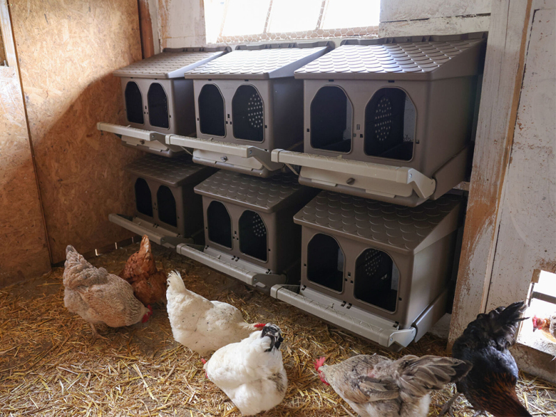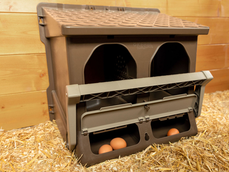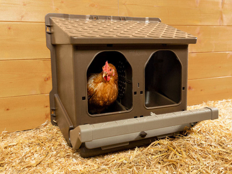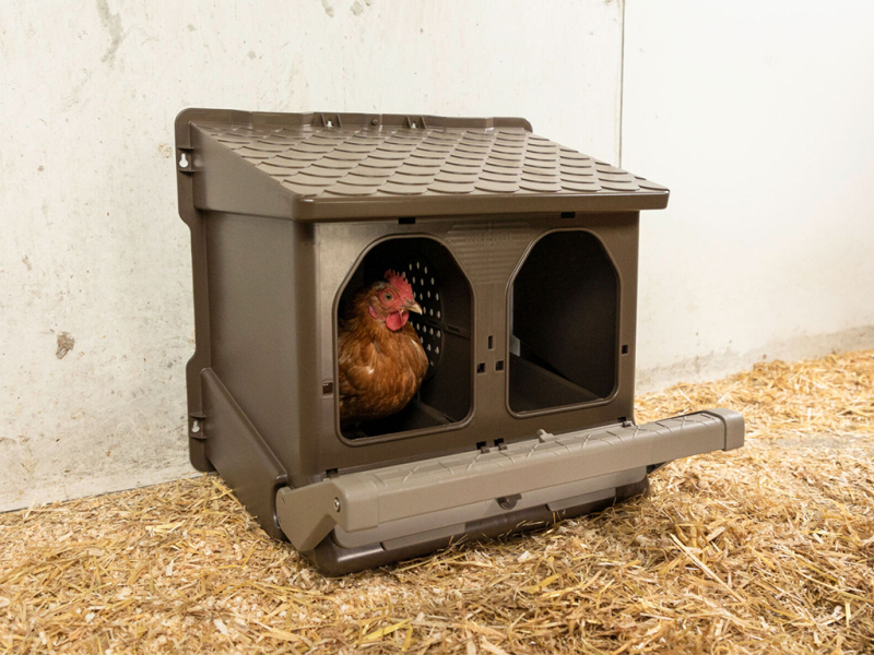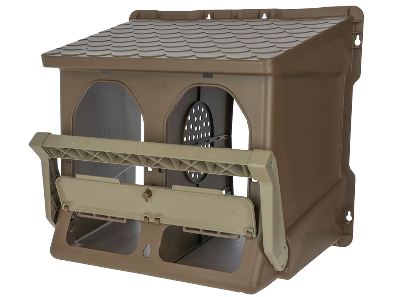 Pohodlné a bezpečné místo je základ pro správný a efektivní chov. Dostatečný a pohodlný prostor poskytnou 2 oddíly rozdělené přepážkou a s kapacitou až pro 5 slepic v každém oddíle. Do hnízda můžete vložit podestýlku, ale nemusíte, nebo můžete zakoupit praktický plastový košík do kukaně pro slepice KERBL 73147, který perfektně doplní Vaše snáškové hnízdo. Pro bezpečnost Vašich zvířat každý chovatel určitě ocení skládací bidlo, které nejen usnadňuje zvířatům vstup, ale také může uzavřítsnáškové hnízdo na noc a zamezit vstup. Se šikmou střechou, která brání kuřatům na ní sedět, velkou kapacitou a možností absolutního pohodlí vytvoříte svým zvířatům to nejlepší místo.