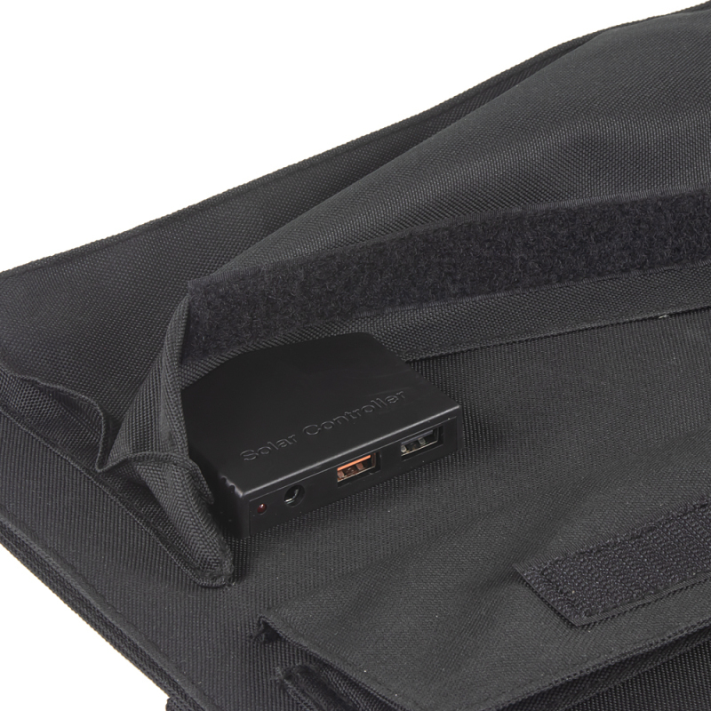Skládací solární panel je určený pro nabíjení 12 V baterií, bateriových nabíjecích stanic, notebooků, mobilních telefonů, powerbank a jiných zařízení s USB konektorem.