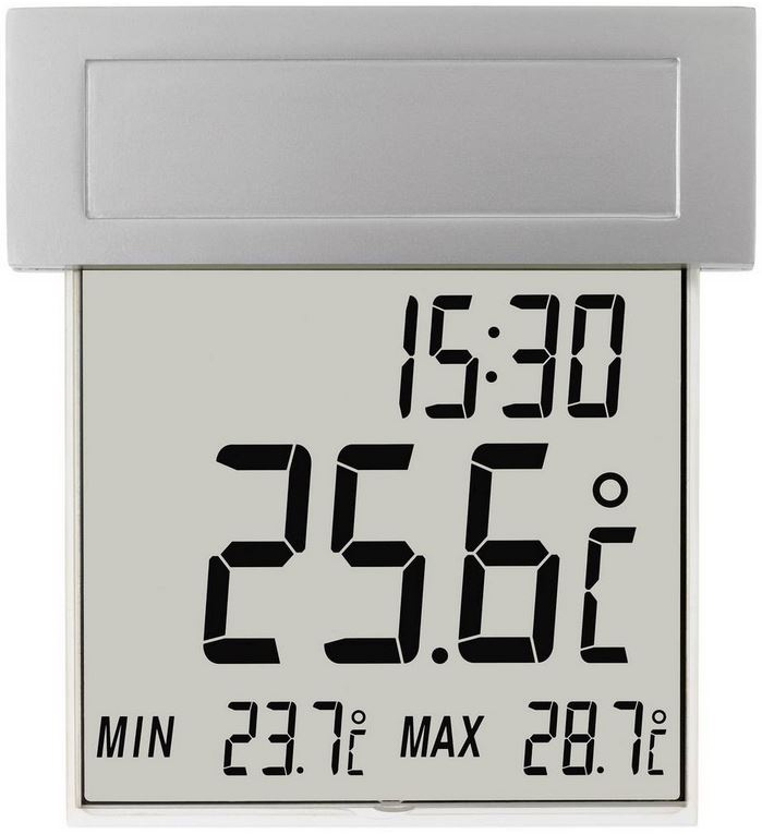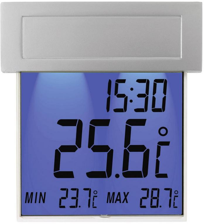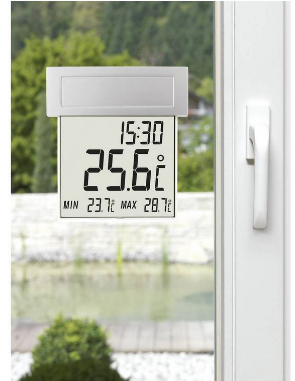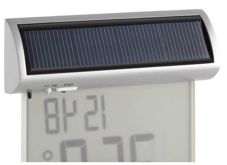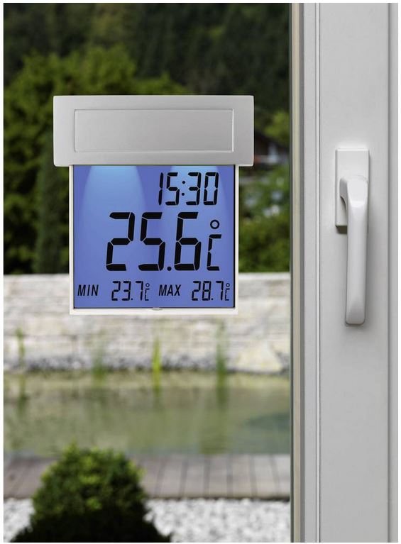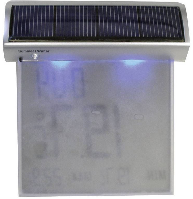 Informace o počasí snadno zjistíte z interiéru, aniž byste byli nuceni otevřít okno. Akumulátor pro automatické osvětlení za tmy se nabíjí solární energií. Teploměr je napájen baterií.