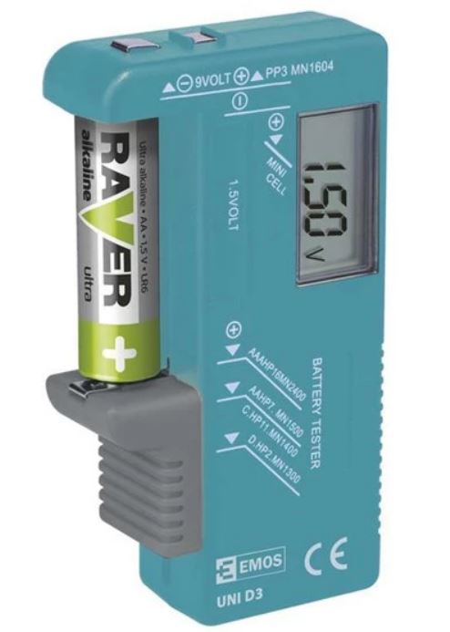 - určeno pro baterie typu AAA, AA, C, D, 9V a pro knoflíkové články 1,5 V