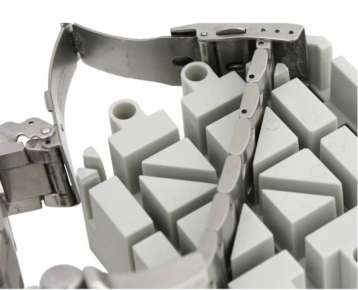 - Výřez na držení pásku z plastu pro různé tloušťky se záchytnou štěrbinou pro kolíky