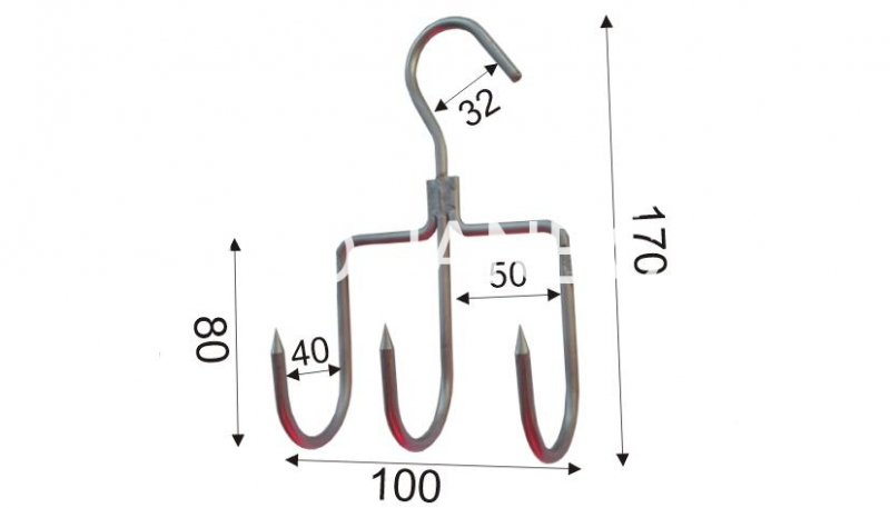 Trojháček se používá na zavěšování plochých kusů masa při uzení. Například větší kousky